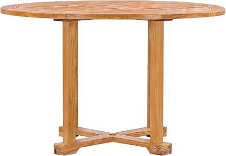Natural teak outdoor large round patio table.