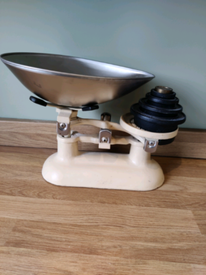 The weight needs to be equal on both sides for the scale to balance. Here are some antique mercantile scales ebay offers: Vintage weighing scales & weights,retro weighing scales. Old style, antique, vintage renovated french small kitchen scale force 1/2 lbs. Free shipping on orders over $25 shipped by amazon.